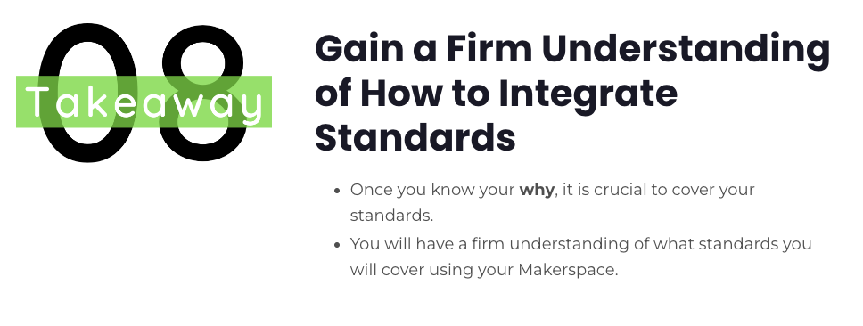 Guess what? Makerspace is standards-based! I talk specifically about standards and interdisciplinary work in Big Play #3: Exploring the Possibilities. So I've got you covered.